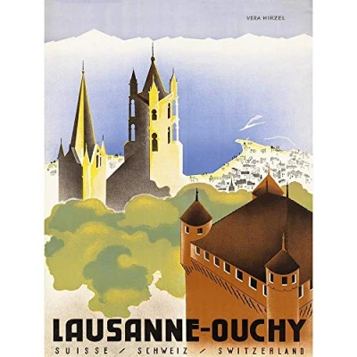 Wee Blue Coo Travel Lausanne Switzerland Cathedral Notre Dame Spire Steeple Art Print Poster Wall Decor 12X16 Inch
