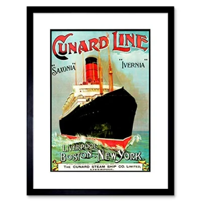 Wee Blue Coo TRAVEL LIVERPOOL NEW YORK LINE OCEAN LINER SHIP UK FRAMED ART PRINT B12X3388