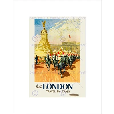 Wee Blue Coo Travel London England UK Buckingham Palace Statue Guard Horse Art Wall Print