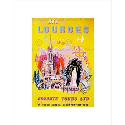 Wee Blue Coo TRAVEL LOURDES FRANCE CATHOLIC PILGRIMAGE MIRACLE WATER PRINT B12X7966