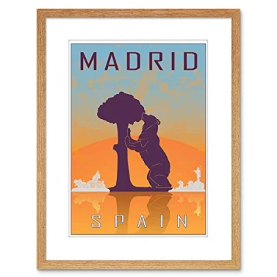 Wee Blue Coo TRAVEL MADRID SPAIN BEAR MADRONO TREE CITY SYMBOL FRAMED PRINT F97X7089