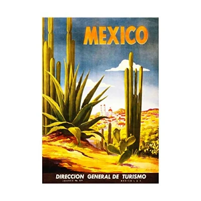 Wee Blue Coo Travel Mexico Cactus Desert Sun Retro Ad Picture Wall Art Print