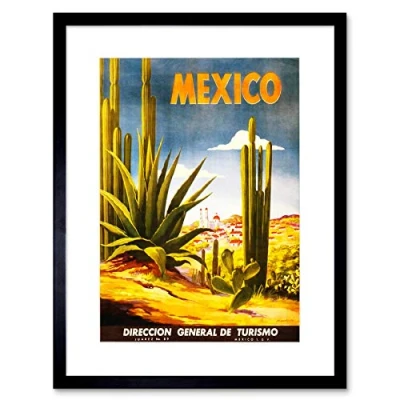 Wee Blue Coo Travel Mexico Cactus Desert Sun Vintage Retro Advert Framed Wall Art Print