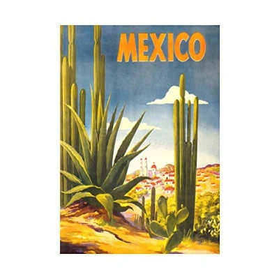 Wee Blue Coo Travel Mexico Cactus Desert Village Advert Tourism Wall Art Print