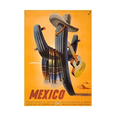 Wee Blue Coo Travel Mexico Cactus Guitar Hat Serape New Picture Wall Art Print