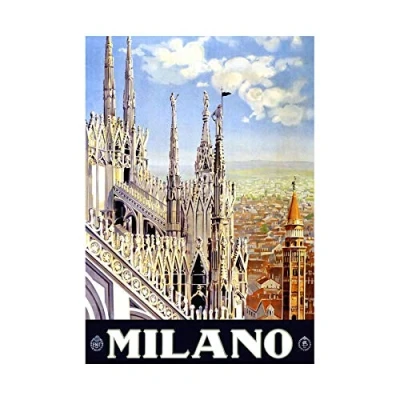 Wee Blue Coo Travel Milano Italy Cathedral Church Advert Tourism Wall Art Print