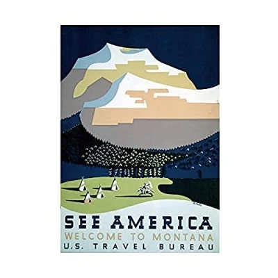 Wee Blue Coo TRAVEL MONTANA NATIVE AMERICAN MOUNTAIN VINTAGE ADVERT FRAMED PRINT B12X1441