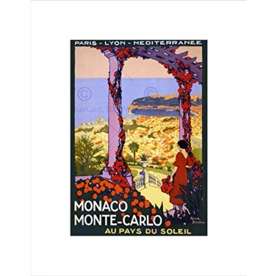 Wee Blue Coo TRAVEL MONTE CARLO MANACO LAND SUN SEA FRANCE VINTAGE ADVERT ART PRINT B12X1630