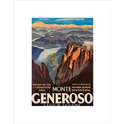 Wee Blue Coo TRAVEL MOUNT GENEROSO LAKE LUGANO SWITZERLAND ALPINE FRAMED ART PRINT B12X12360