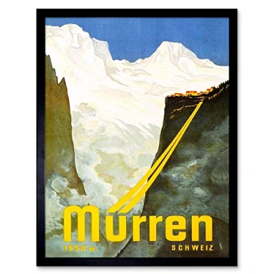 Wee Blue Coo Travel Murren Switzerland Snow Mountain Alpine Resort Ski Art Print Framed Poster Wall Decor 12X16 Inch