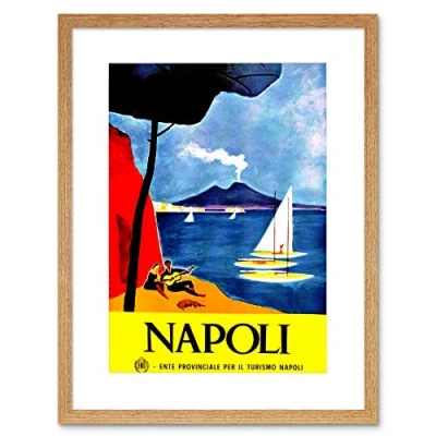 Wee Blue Coo Travel Naples Italy Vesuvius Volcano Bay Yacht Tree Guitar Beach Framed Wall Art Print