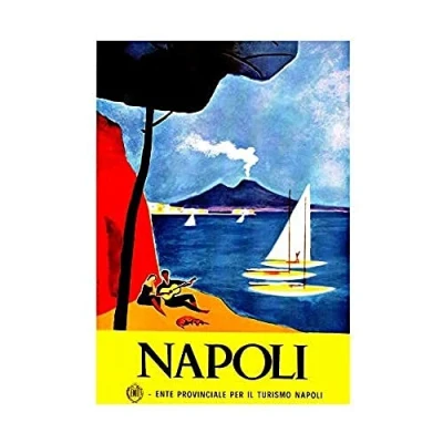 Wee Blue Coo Travel Naples Italy Vesuvius Volcano Bay Yacht Tree Guitar Beach Wall Art Print