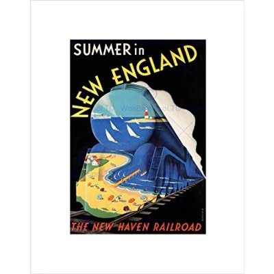 Wee Blue Coo Travel New England Train Rail Beach Sea Boat Lighthouse Wall Art Print