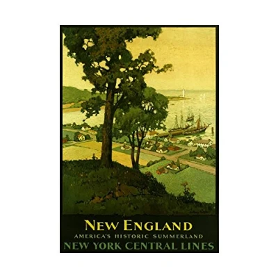 Wee Blue Coo Travel New England York USA Rail Harbour Vintage Advert Wall Art Print