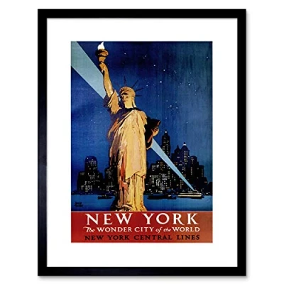Wee Blue Coo Travel New York Statue Liberty Manhattan Railway Vintage Framed Wall Art Print
