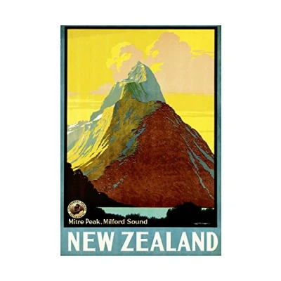 Wee Blue Coo Travel New Zealand Milford Sound Mitre Peak Mountain Wall Art Print