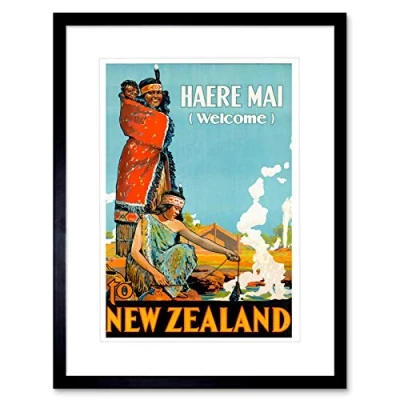Wee Blue Coo TRAVEL NEW ZEALAND NATIVE MAORI WELCOME COSTUME HOT SPRING FRAMED PRINT B12X6489