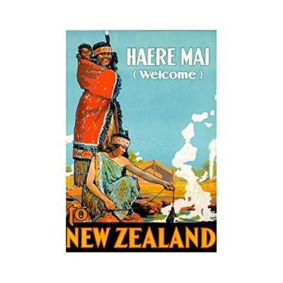 Wee Blue Coo Travel New Zealand Native Maori Welcome Costume Hot Spring Wall Art Print
