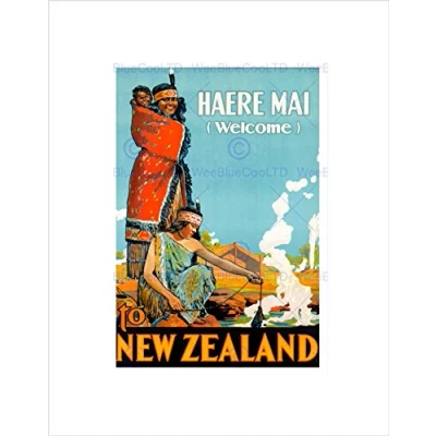Wee Blue Coo Travel New Zealand Native Maori Welcome Costume Hot Spring Wall Art Print