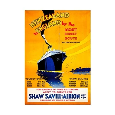 Wee Blue Coo Travel New Zealand Sail Boat Orange England Picture Wall Art Print