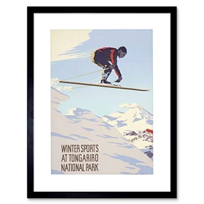 Wee Blue Coo Travel New Zealand Winter Sports Tongariro Park Picture Framed Wall Art Print