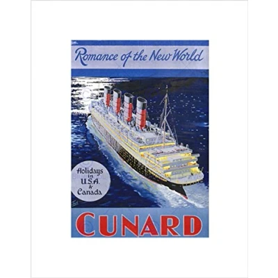 Wee Blue Coo Travel Night Boat Sail Ship Ocean Liner Sea New World Wall Art Print