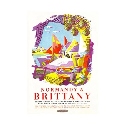 Wee Blue Coo Travel Normandy Brittany France Harbour Boat Cafe UK Wall Art Print