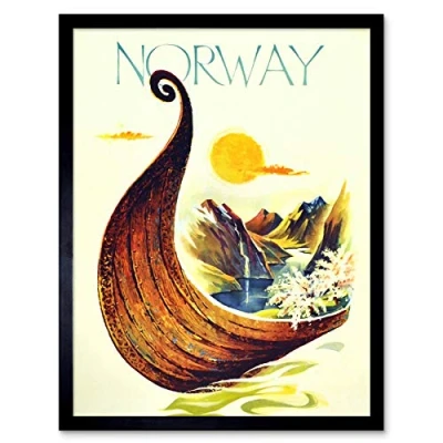 Wee Blue Coo Travel Norway Scandinavia Viking Boat River Art Print Framed Poster Wall Decor 12X16 Inch