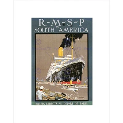 Wee Blue Coo TRAVEL OCEAN LINER SHIP BOAT FRANCE SOUTH AMERICA ROUTE FRAMED PRINT B12X10310