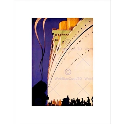 Wee Blue Coo TRAVEL OCEAN LINER SHIP BOAT PEOPLE DOCK TRAIN ENGINE FRAMED PRINT B12X7552