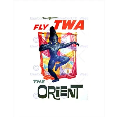 Wee Blue Coo TRAVEL ORIENT AIRLINE ADVERT SCULPTURE ASIA BLACK FRAMED ART PRINT B12X10197