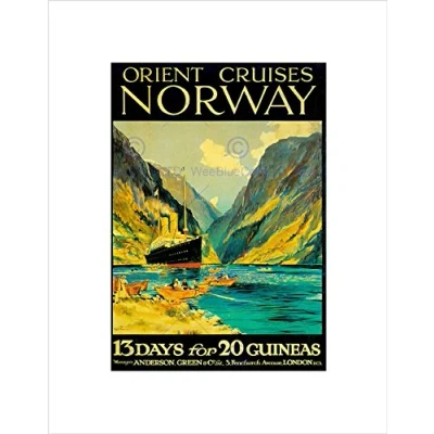Wee Blue Coo Travel Orient Cruises Norway Fjord Ship London UK Vintage Wall Art Print
