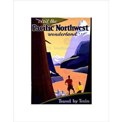 Wee Blue Coo TRAVEL PACIFIC NORTHWEST TRAIN RAIL VINTAGE ADVERT FRAMED ART PRINT B12X1652