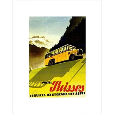 Wee Blue Coo Travel Post Bus Alpine Swiss Mountain Road Pine Forest Wall Art Print