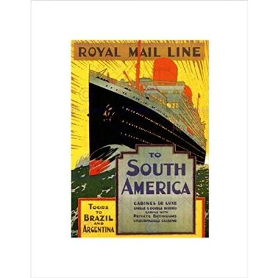 Wee Blue Coo TRAVEL POST SHIP SERVICE SOUTH AMERICA OCEAN BOAT UK FRAMED PRINT B12X10319