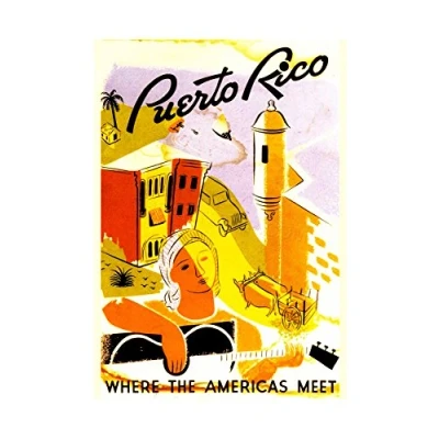 Wee Blue Coo Travel Puerto Rico Island Caribbean Resort Girl Guitar USA Wall Art Print