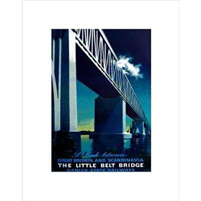 Wee Blue Coo TRAVEL RAIL BRIDGE LITTLE BELT DENMARK SCANDINAVIA UK DANISHAD PRINT B12X1422
