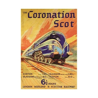 Wee Blue Coo Travel Rail LMSR London Glasgow Coronation Scot UK Wall Art Print