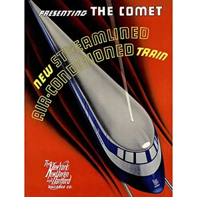 Wee Blue Coo Travel Rail Train Comet Streamline Speed Railroad Modern USA Art Print Poster Wall Decor 12X16 Inch