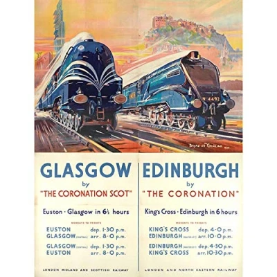 Wee Blue Coo Travel Rail Train Glasgow Edinburgh Scotland Transport Castle Art Print Poster Wall Decor 12X16 Inch