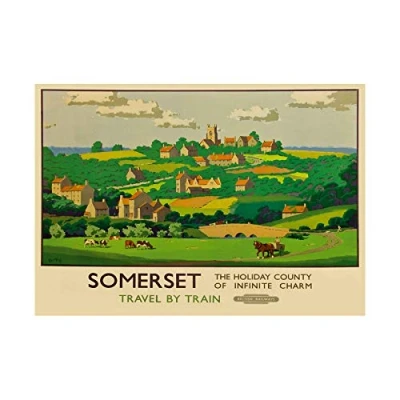 Wee Blue Coo Travel Rail Train Somerset County Village Rural Picture Wall Art Print