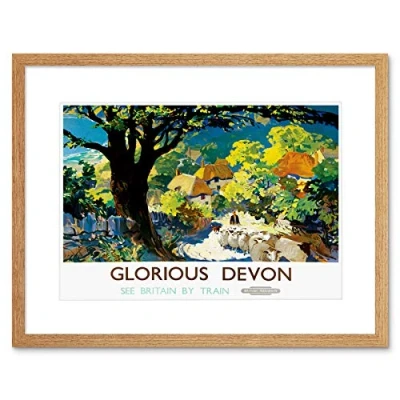 Wee Blue Coo Travel Railway Devon England UK Glorious Village Tree Framed Wall Art Print
