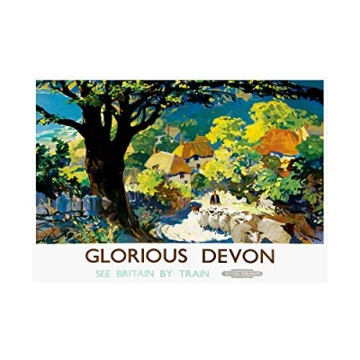 Wee Blue Coo Travel Railway Devon England UK Glorious Village Tree Wall Art Print