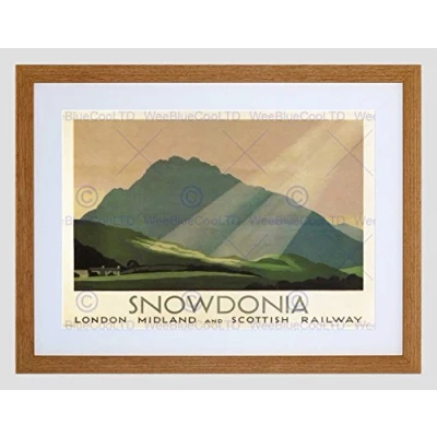 Wee Blue Coo Travel Railway Rail Snowdonia Wales Mountain Sun UK Britain LMSR Framed Wall Art Print