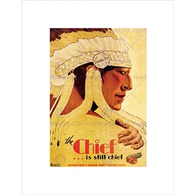 Wee Blue Coo TRAVEL RAILWAY SANTA FE CHIEF LOCOMOTIVE NATIVE AMERICAN FRAMED PRINT B12X1675