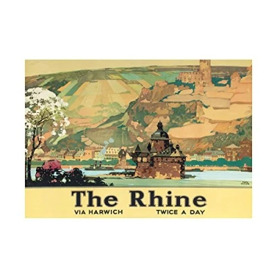Wee Blue Coo Travel River Castle Landscape Rhine Vintage Ad Wall Art Print