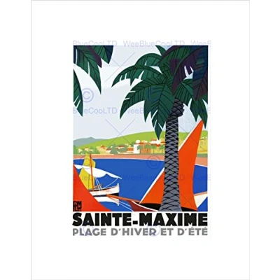 Wee Blue Coo TRAVEL SAINTE MAXIME FRANCE WINTER SUN RESORT PALM SEA FRAMED PRINT B12X12371