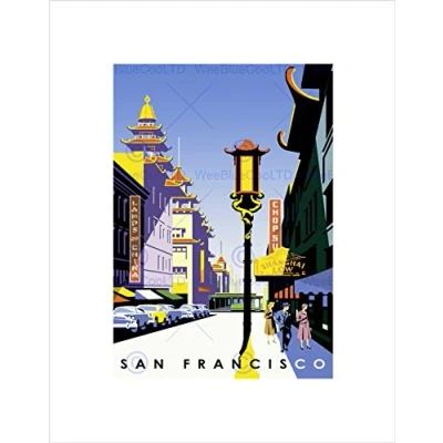 Wee Blue Coo TRAVEL SAN FRANCISCO VINTAGE ILLUSTRATION NEW BLACK FRAMED ART PRINT B12X11319