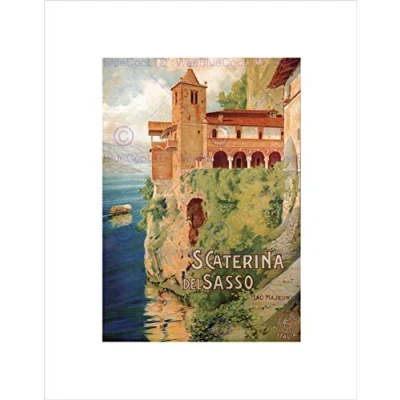 Wee Blue Coo Travel Santa Caterina Del Sasso Lake Maggiore Italy Vintage Art Wall Print