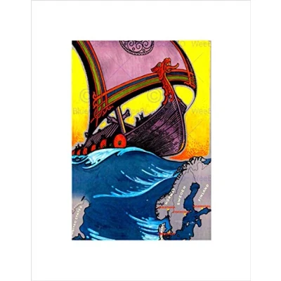 Wee Blue Coo TRAVEL SCANDINAVIA VIKING LONGSHIP SAIL OCEAN SEA FRAMED ART PRINT B12X7982